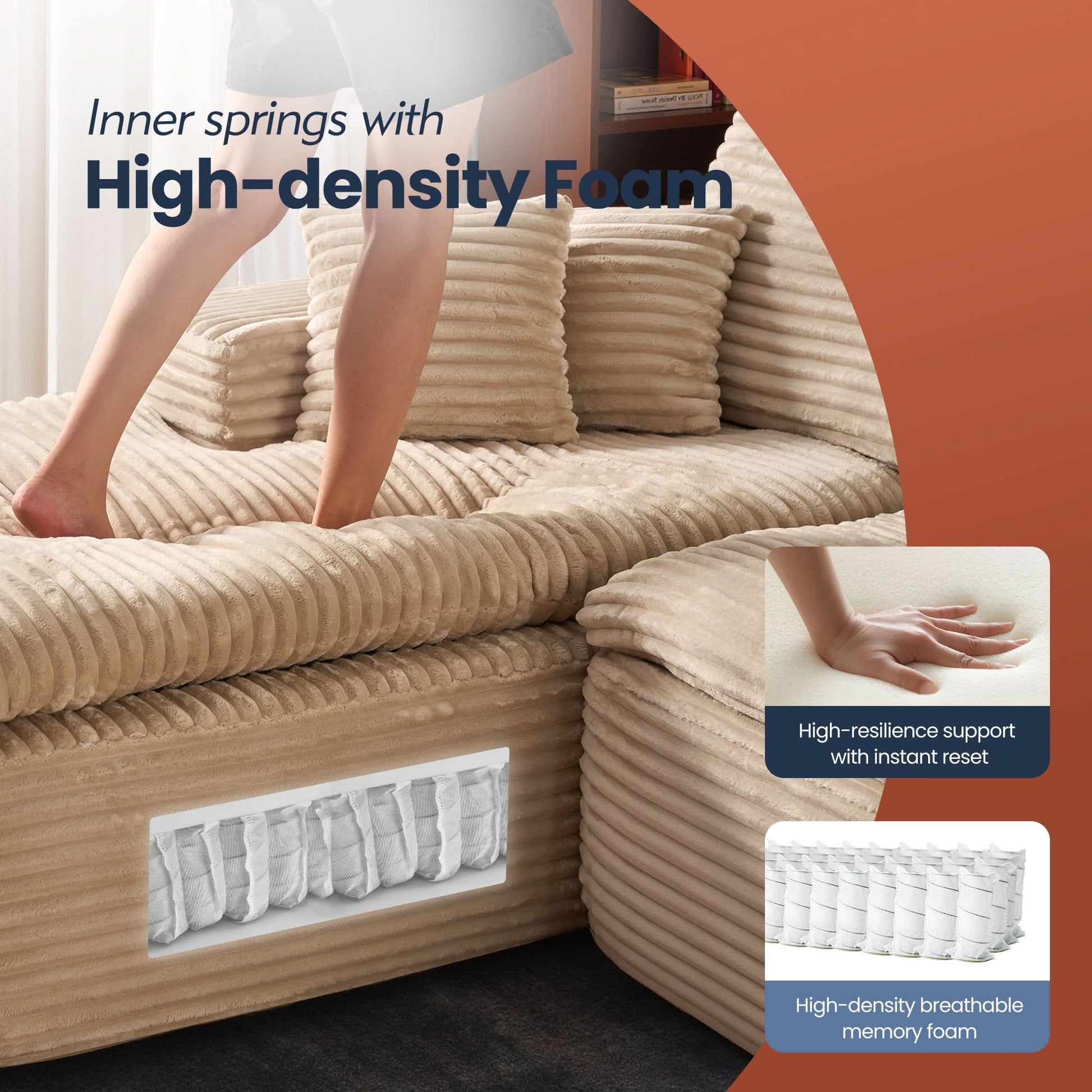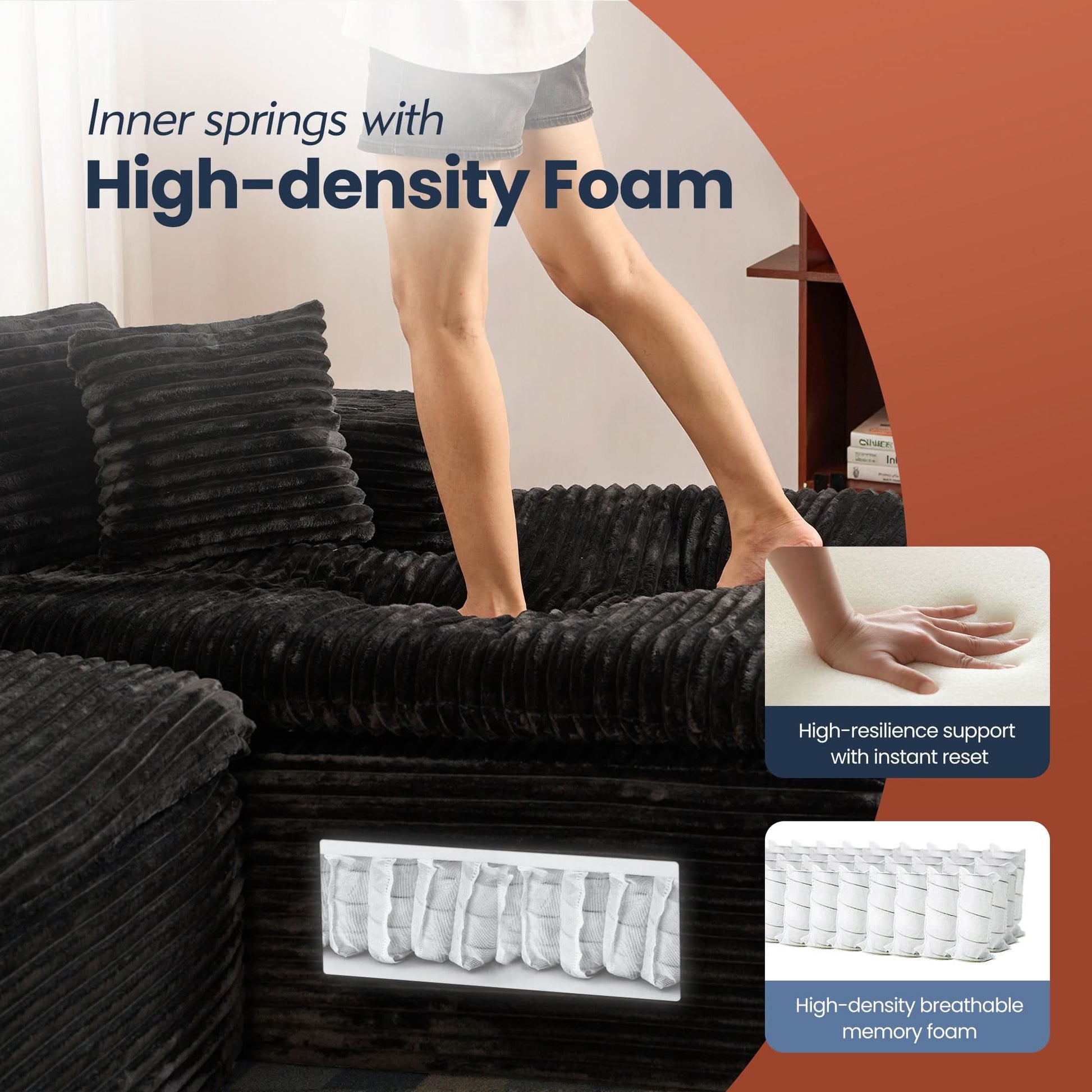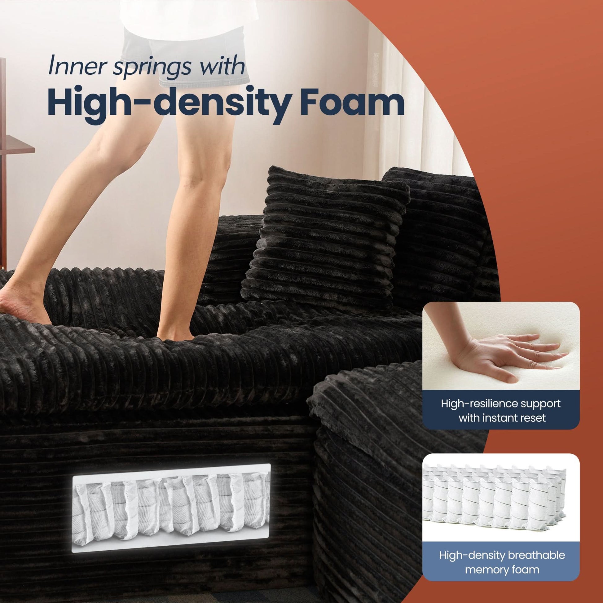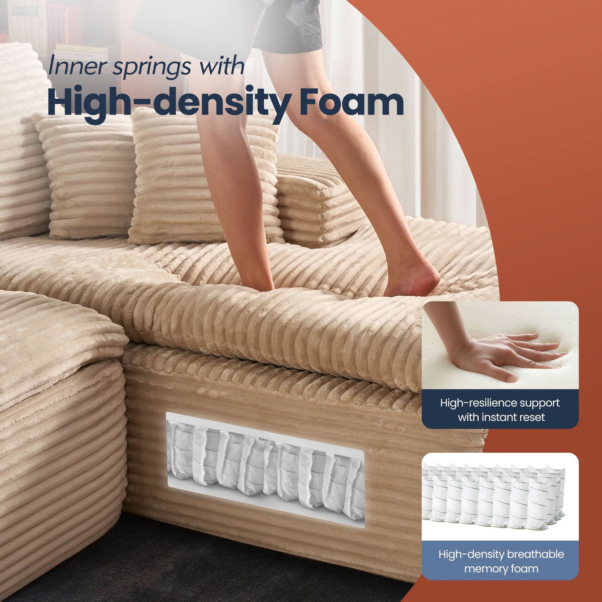 Comfy Chaise Couch:With a 51-inch chaise, this sofa invites you to truly unwind. Sink into soft yet supportive cushions made with high-resilience foam and reinforced with coil springs and coil spring reinforcement.Let you indulge in ultimate ease and comfort.