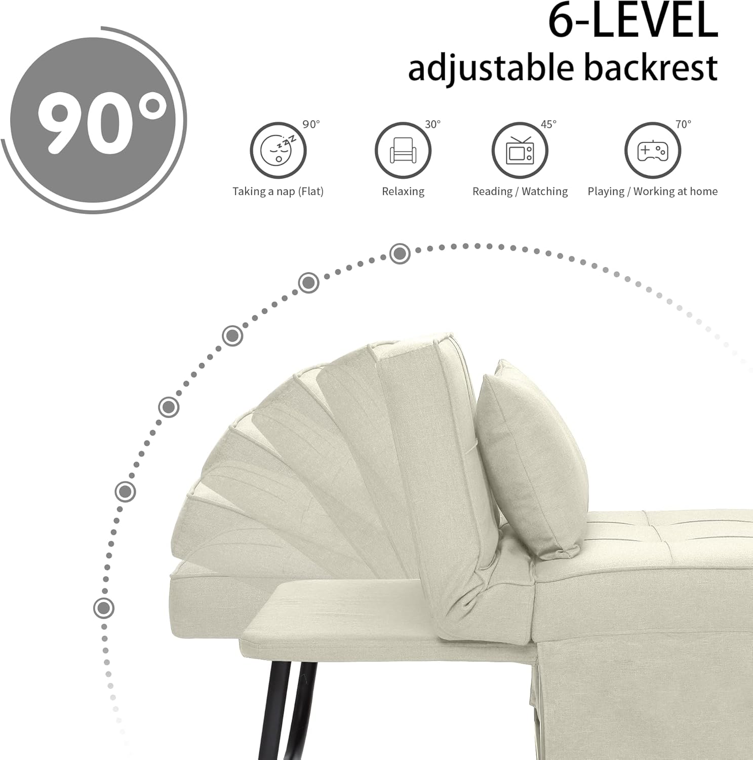 Relax your way with multiple reclining angles — from upright seating to fully flat sleeping. Includes a removable lumbar pillow for added support.