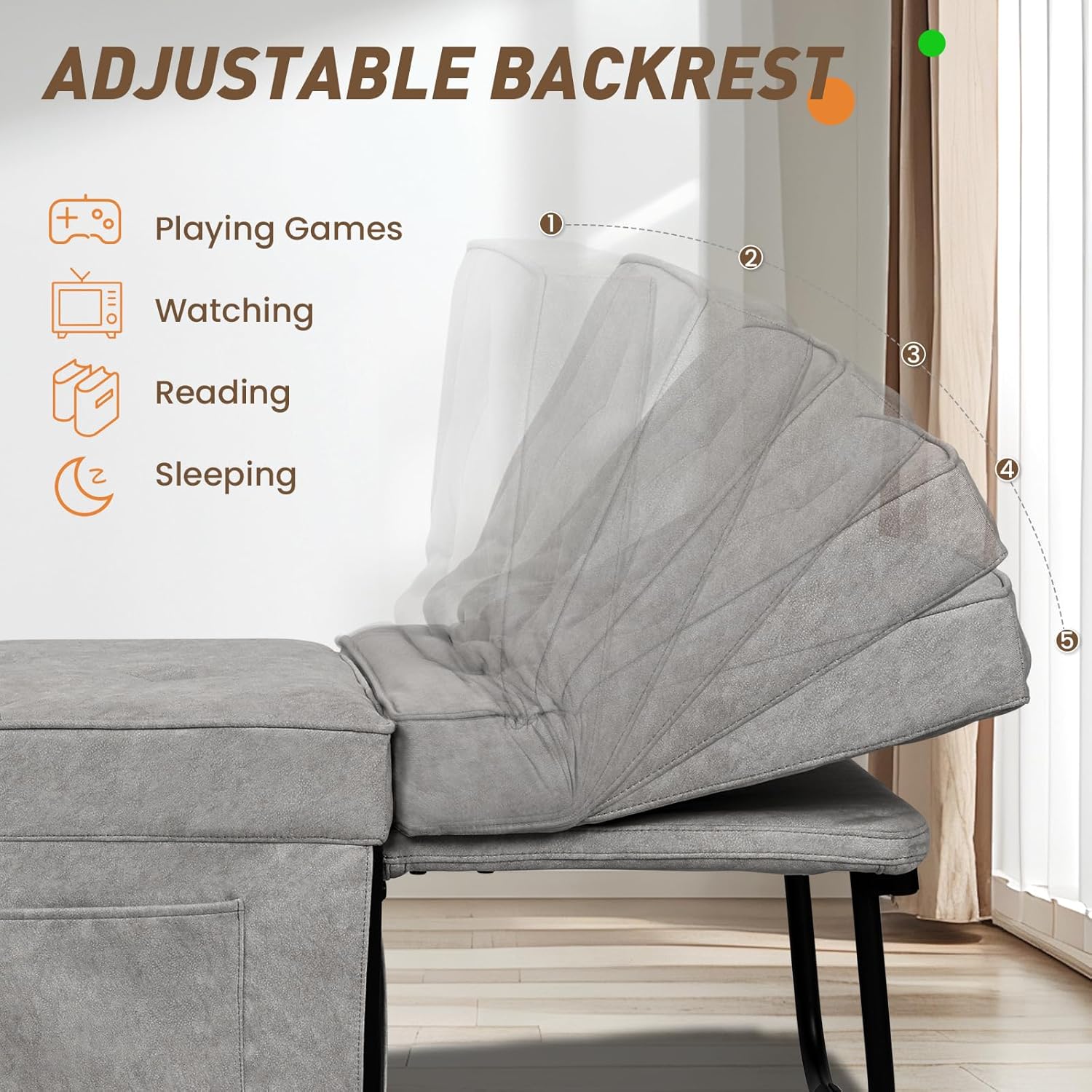 ✅ Adjustable Backrest (5+ Positions)