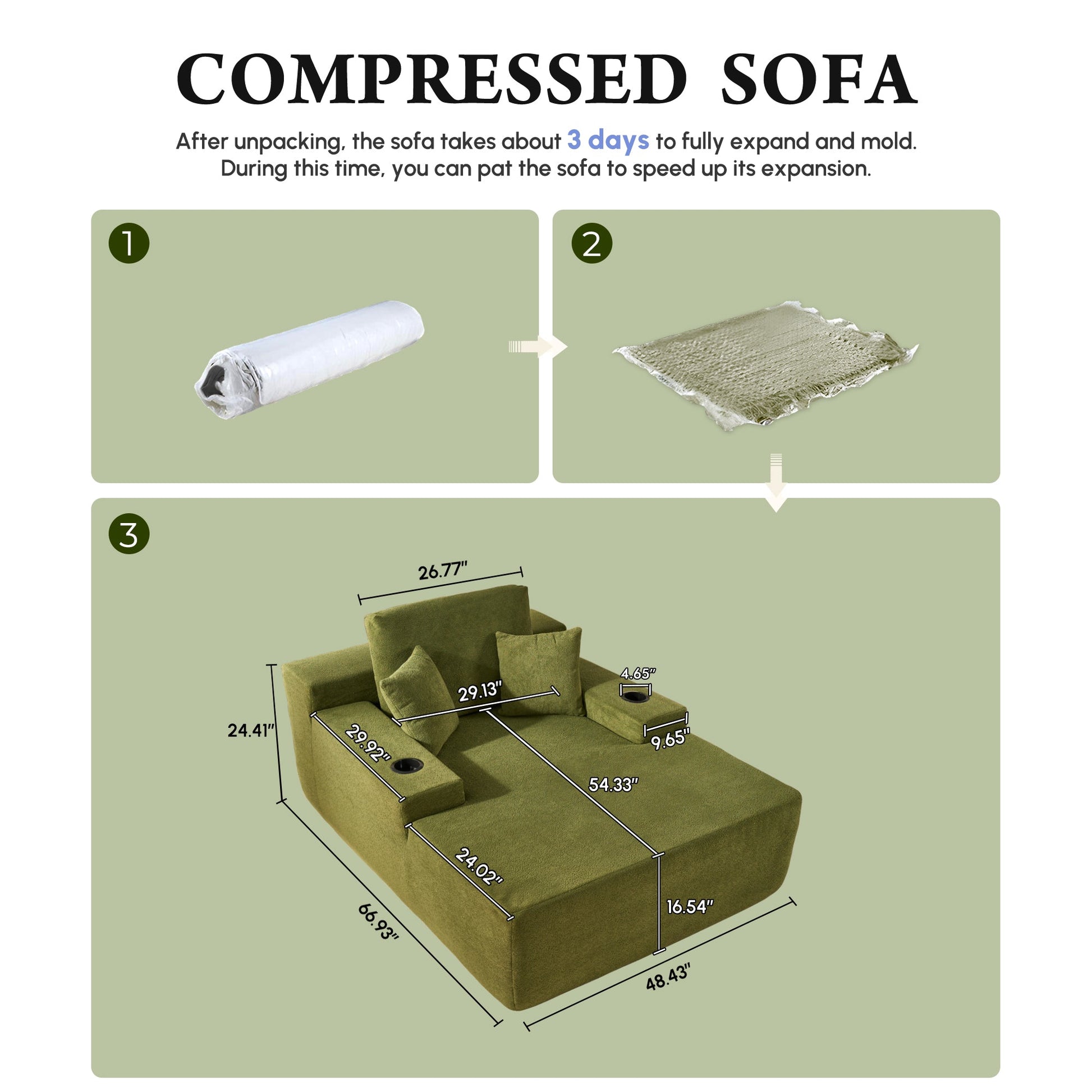 OVIOS 67'' Chaise Lounge Chair with Cup Holders, Plush Velvet Sofa Bed