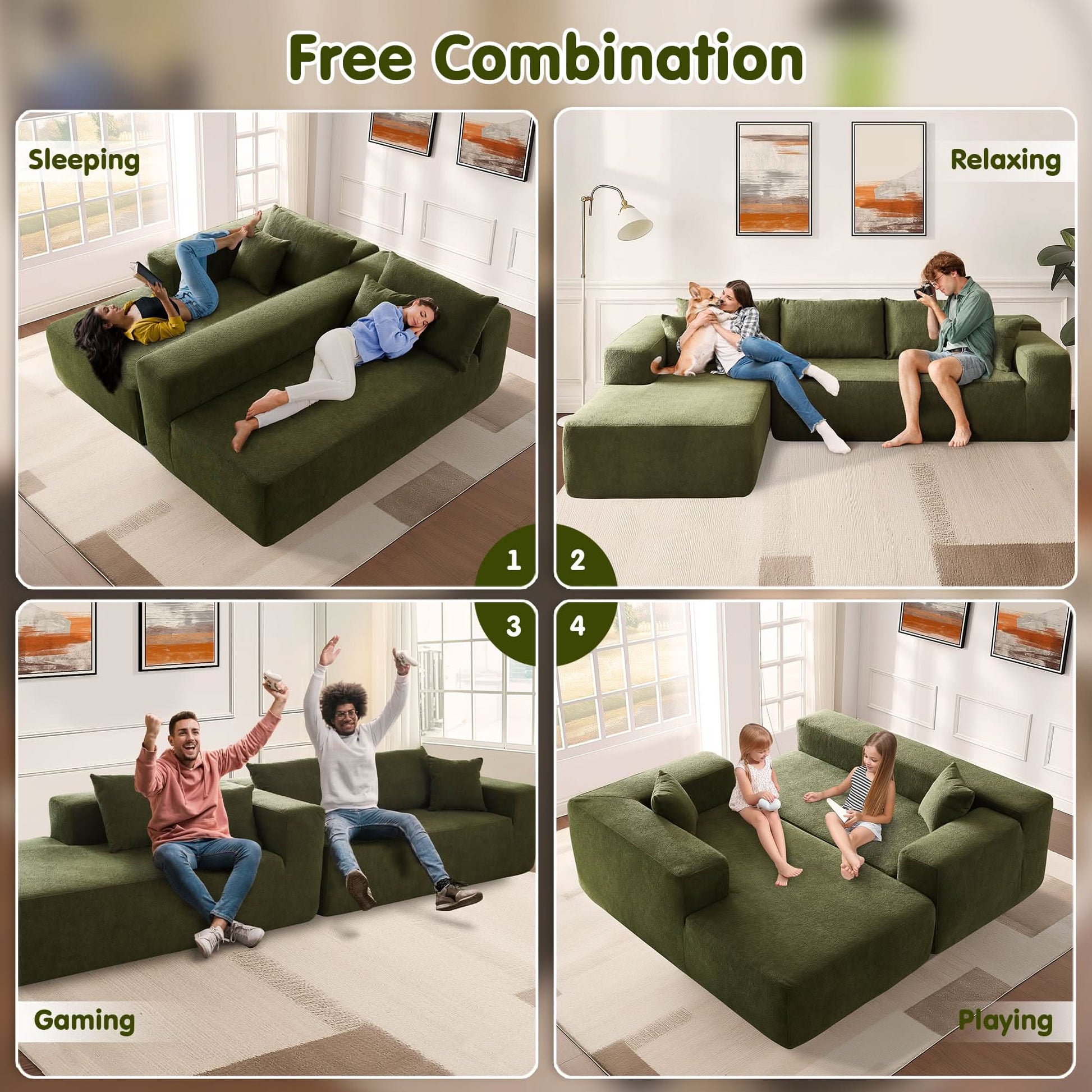 OVIOS 104" L-Shape Modular Couch with Chaise,Cloud Velvet Fabric,No Assembly Required